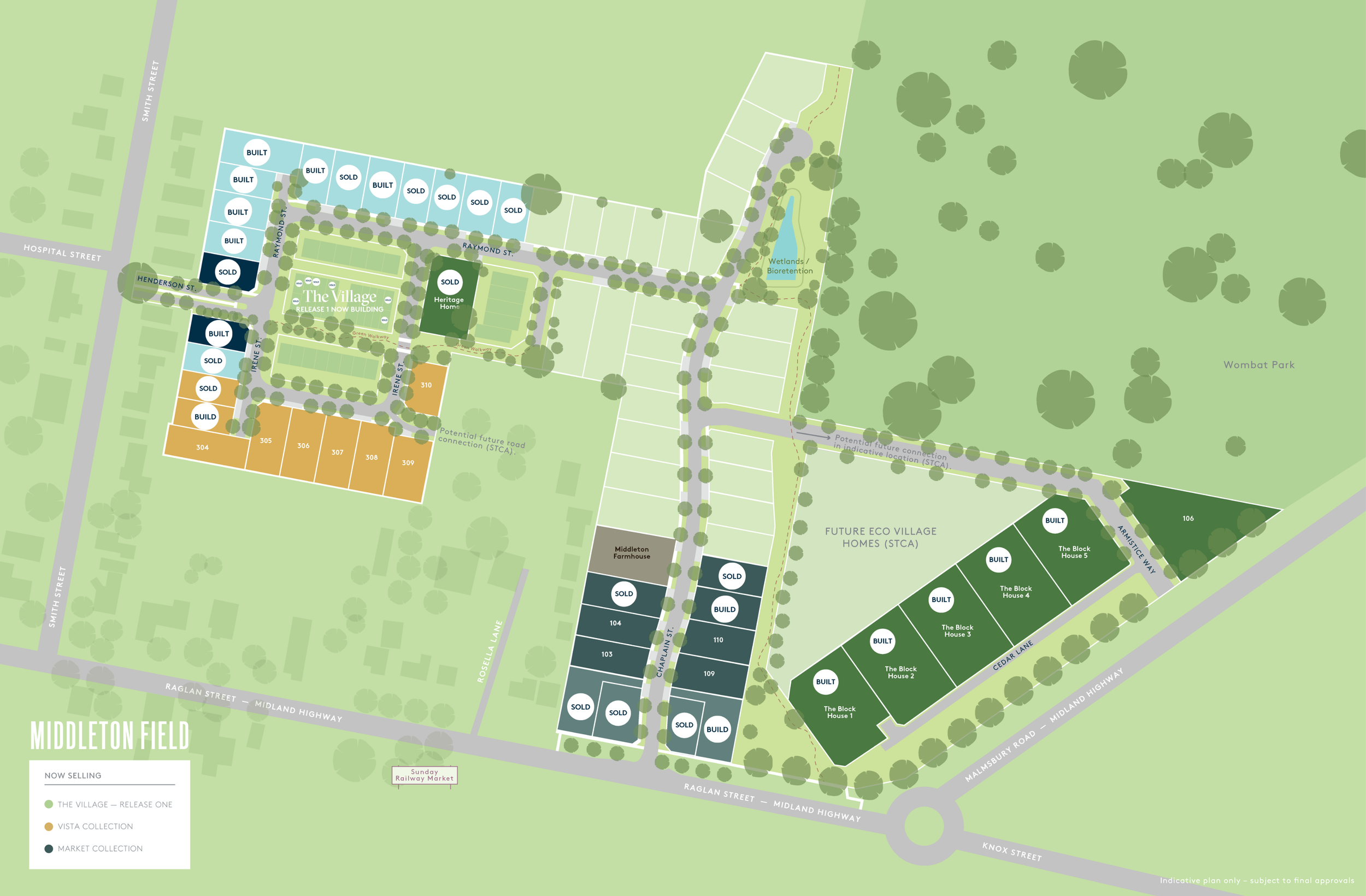 Land at Middleton Field will be released in limited collections, with the first stage (including Collections 1 and 2) at Middleton Field sold and constructed. Premium larger homesites in the Vista Collection with uninterrupted views of the Wombat Hill Botanic Gardens are now available.